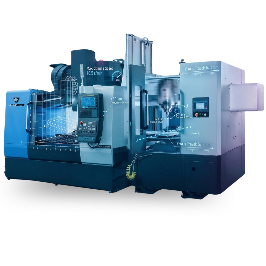 The DN Solutions DNM 5700 is a high-performance vertical machining center engineered for versatility and reliability across various industries, including automotive and mold processing. It features a spacious work envelope with travels of 1,050 mm in the X-axis and 570 mm in the Y-axis, supported by a heavy-duty table capable of holding up to 1,000 kg.